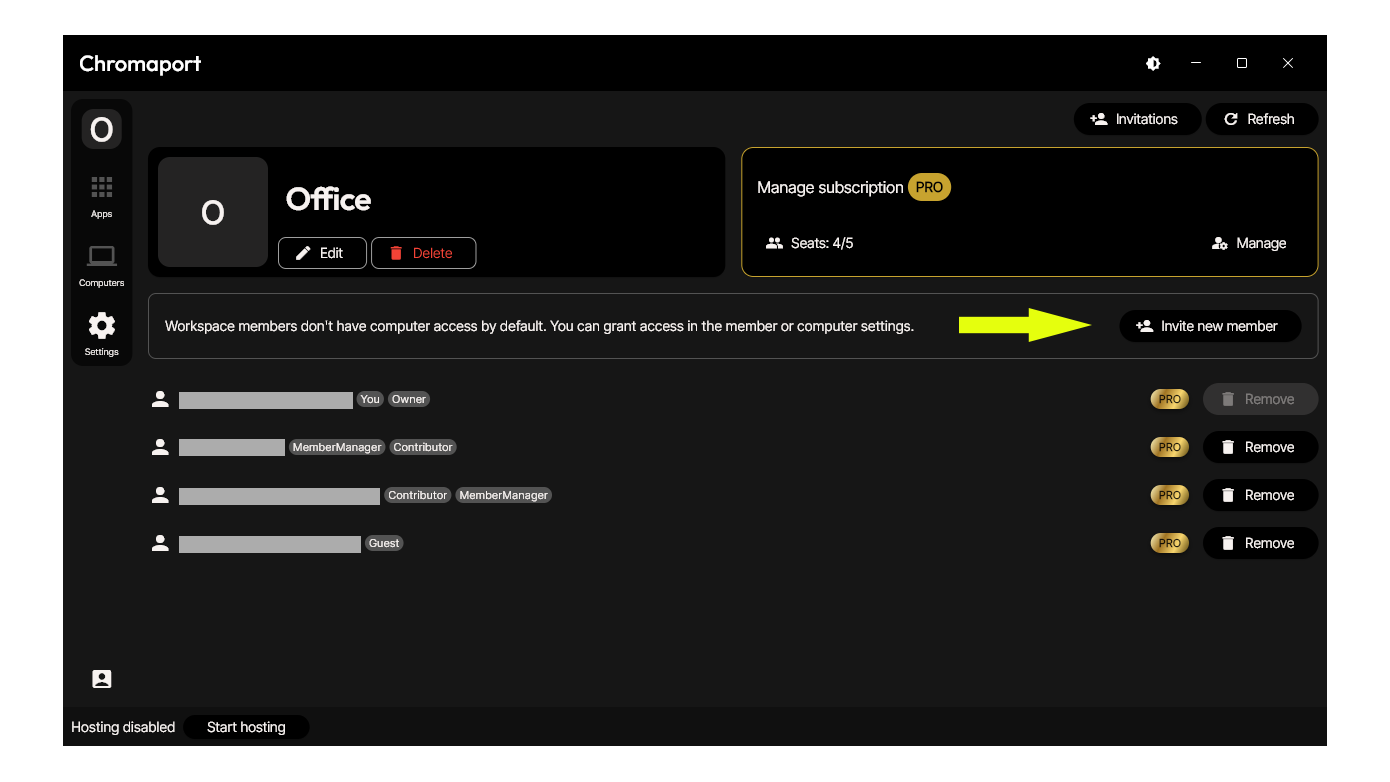 Inviting members allows you to turn your workspace into a collaborative environment. By creating invitation links, controlling access, and assigning permissions, you can safely share your computers and applications with others while maintaining full control over your workspace.
