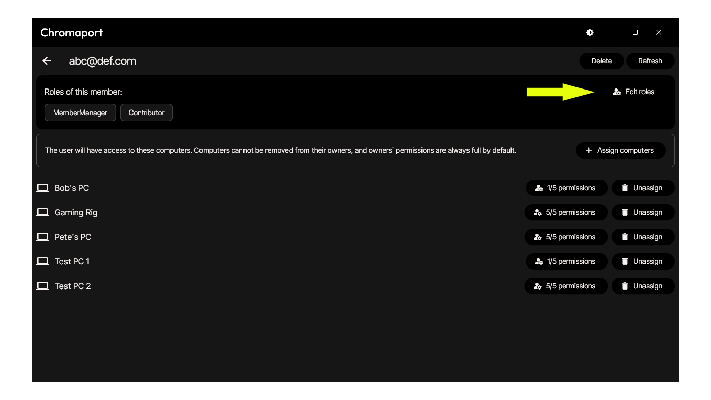 - Click 'Edit roles' (top right)